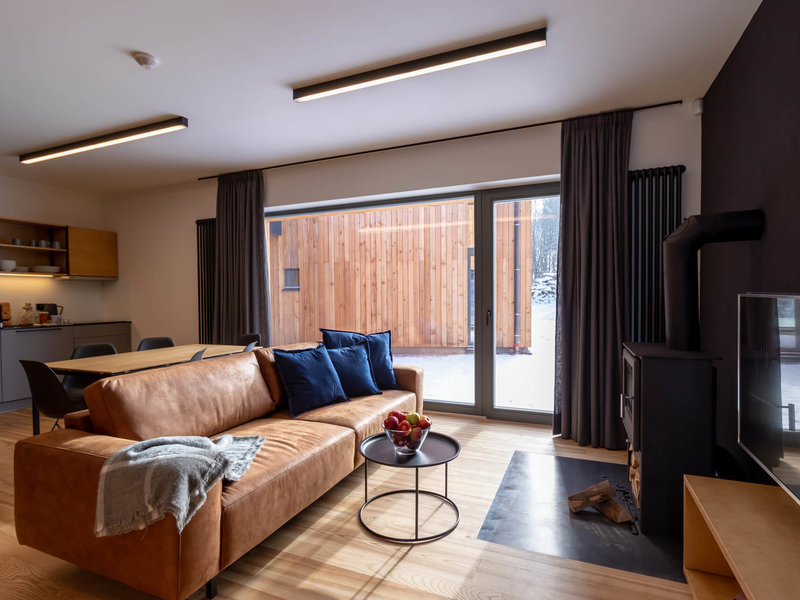 Horská chata ve skandinávském stylu se saunou a vířivkou