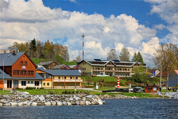 Autem po silnici č. 39 do Černé v Pošumaví, odtud směr Bližná, až na konec silnice k jezeru. Parkování u hotelu.Vzdálenost: z Prahy: 196,7 km, z Českých Budějovic: 49,8 km, z Brna: 263,3 km, z Ostravy: 431,8 km