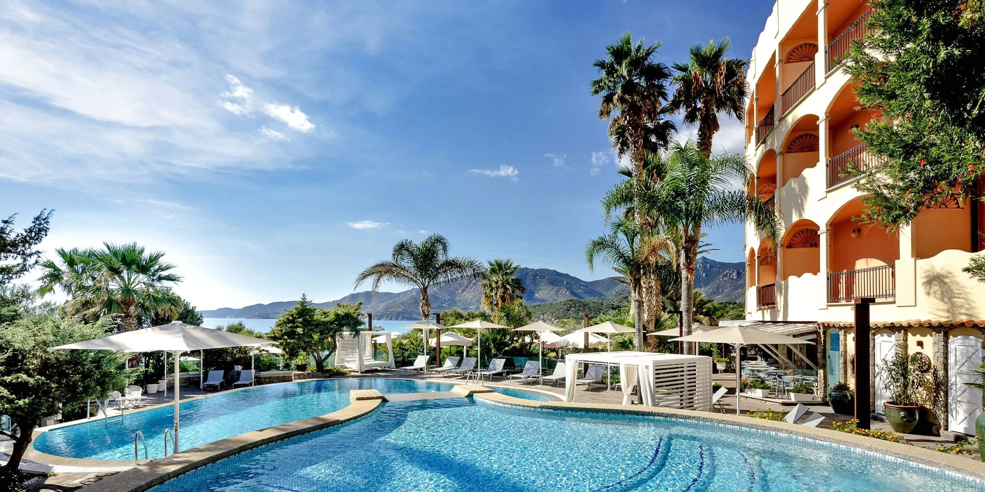 Sardinie: hotel u pláže, polopenze, panoramatický bazén
