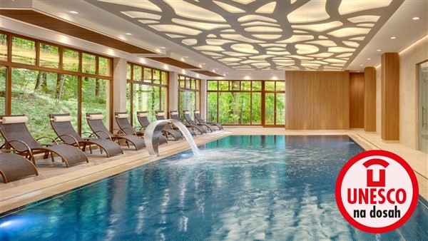 restaurace Carlton, lobby bar, společenská místnost s kulečníkem, dětským koutkem, internetový koutek, Wi-Fi internet zdarma. WELLNESS CENTRUM: bazén s výhledem do lesa (12,4 m x 5,5m x 1,3m a teplotou 29-30 °C), s vířivými proudy, whirlpoolem, saunou a párou, Dále whirlpool, sauna a parní lázeň. Léčení: procedury z přírodního CO2, masáže, parafínové zábaly na ruce, ultrazvuk, elektroterapie, kryoterapie aj.
