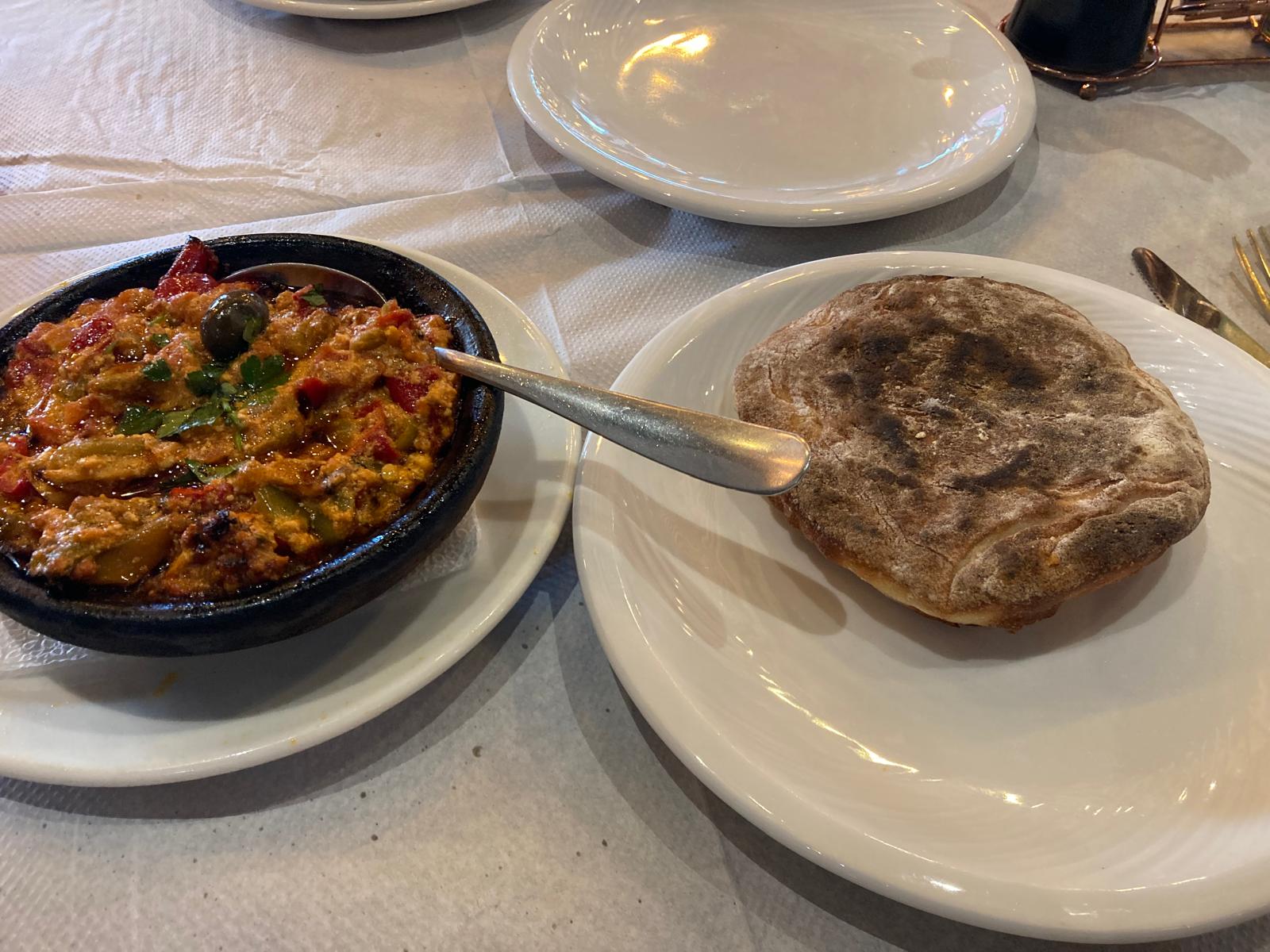Fërgesë — tradiční tirana dish. Paprika, rajčata, sýr a maso zapečené v hliněném hrnci. Povinná zastávka.