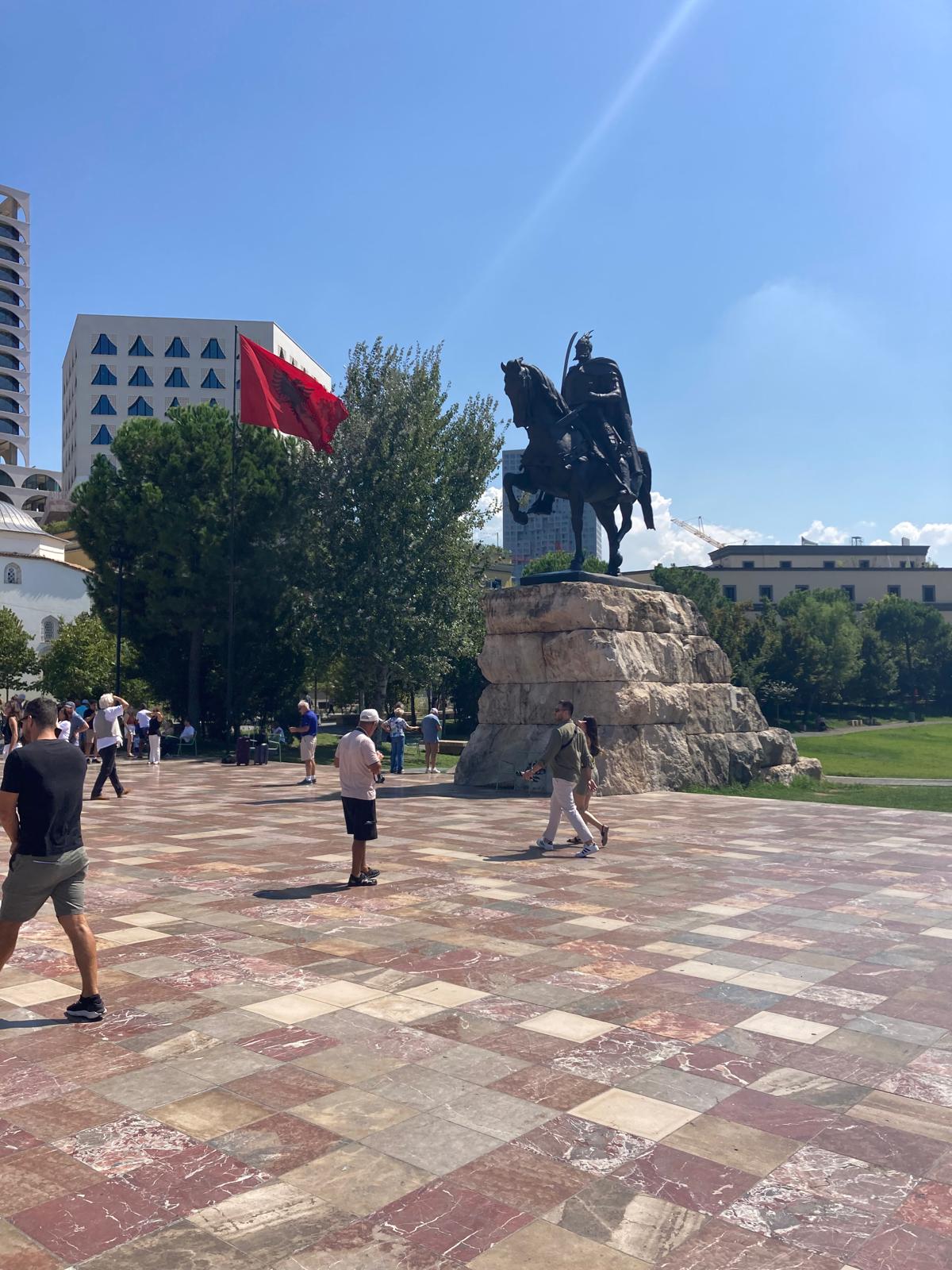 Srdce Tirany je obrovské centrální náměstí pojmenované po národním hrdinovi Gjergji Kastriotimu — Skanderbegovi. Jezdecká socha uprostřed, impozantní mešita Et’hem Bey z 19. století a Národní historické muzeum se socrealistickou mozaikou na fasádě — to vše na jednom místě.