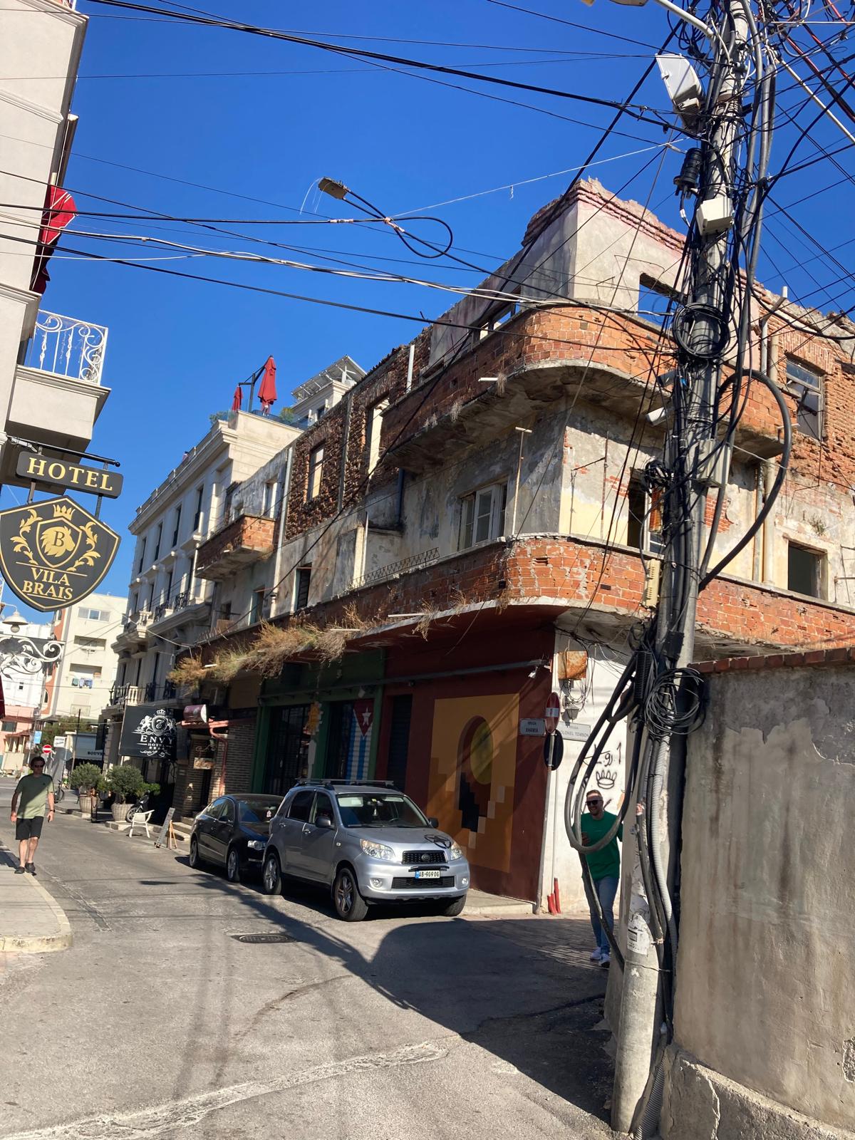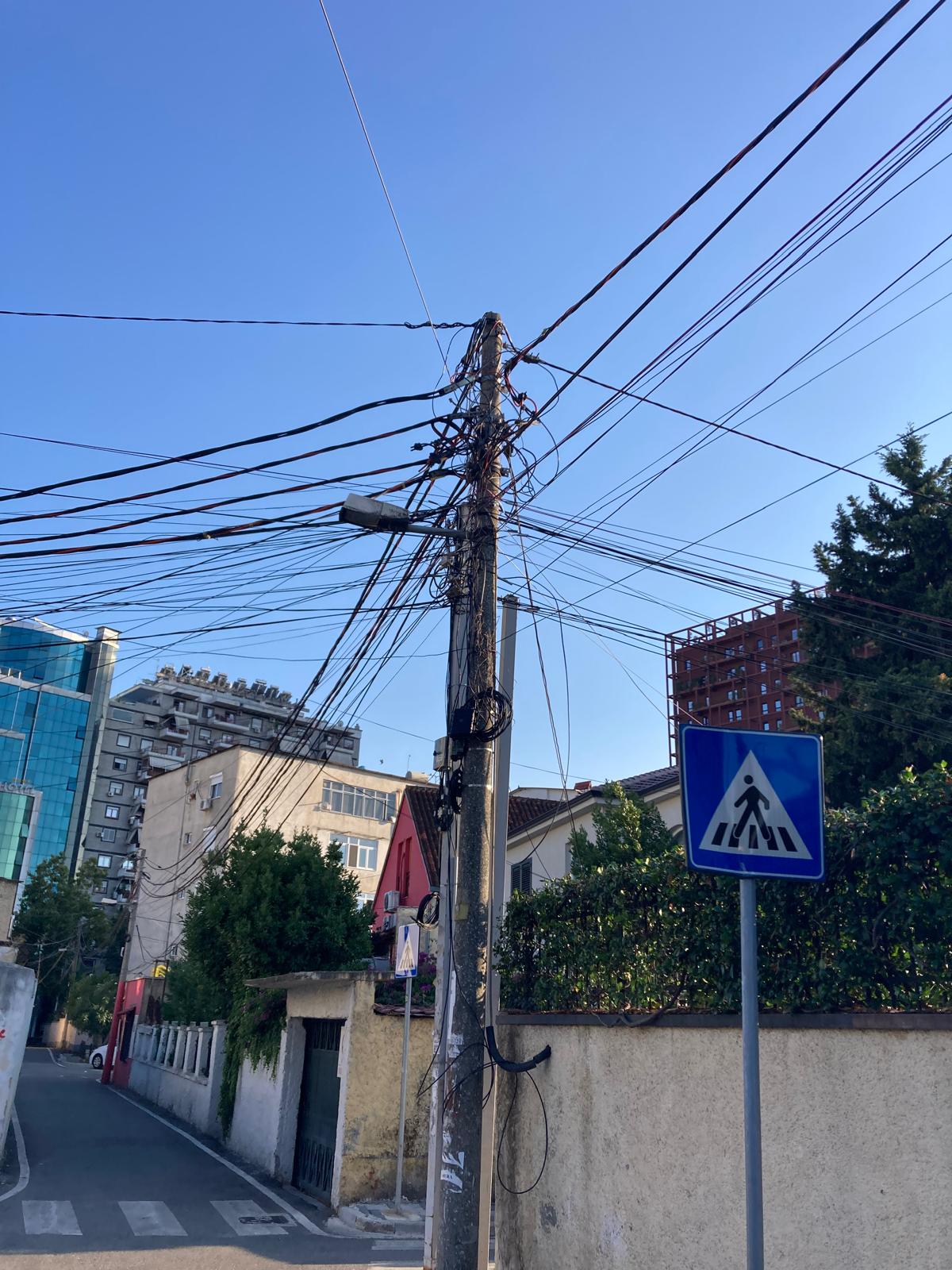 Mimo turistické zóny: Jakmile vykročíte z hlavních turistických oblastí, Tirana vás může překvapit — ulice vypadají zanedbaněji a ze sloupů visí husté spleti elektrického vedení. Můj kamarád elektrikář to viděl a strašilo ho to ve snech. Takže jo — je to trochu chaos, ale prostě tak to tam chodí a místní to berou jako naprostou normalitu. Neberte to jako důvod nejezdit — je to součást toho co dělá Tiranu Tiranou.